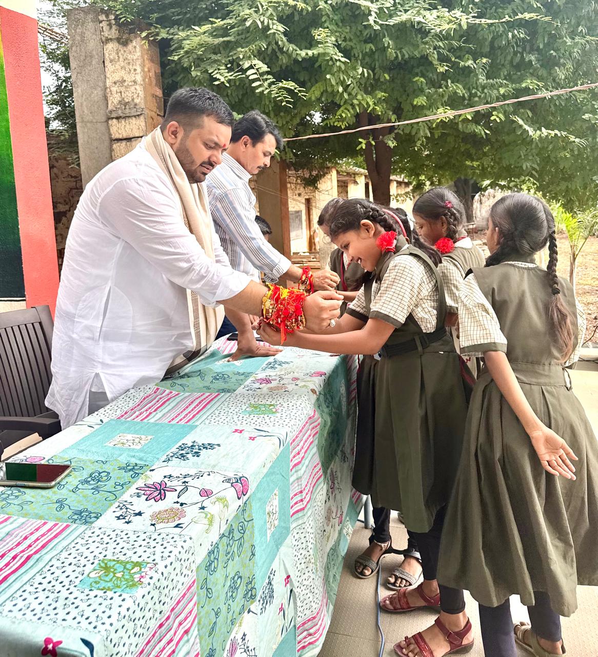 भानस हिवरे येथे श्रीराम हायस्कूलमध्ये अब्दुल शेख यांच्या उपस्थितीत रक्षाबंधन उत्साहात साजरा