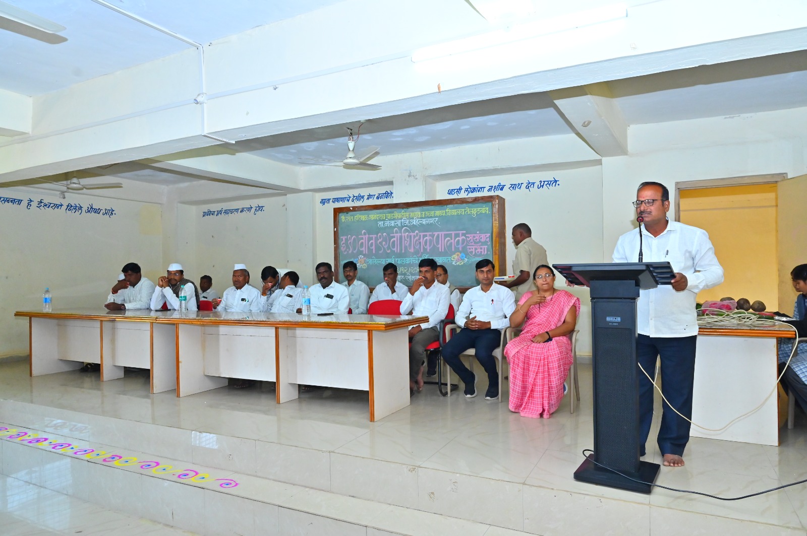 प्रमुख अतिथी व पालक प्रतिनिधी म्हणून मार्गदर्शन करताना प्राध्यापक मधुकर घाडगे,सतिषराव काळे,अमोल महाराज, श्रीकांत पौळ,प्राचार्य व प्रशासक व शिक्षक आदींनी आपल्या मनोगतात सांगितले की..,शाळा ह्या संस्कार-केंद्र आहेत शाळेत विद्यार्थ्यांवर संस्कार होतात पण प्रत्येक पालकाने ही आपल्या घरी सुसंस्काराचे रोपटे.. लावले पाहिजे..म्हणजे शिक्षेचा प्रश्न उद्भवणार नाही..शाळेत शिकत असलेल्या विद्यार्थ्यांचा बौद्धिक विकास हा शिक्षकांच्या मार्गदर्शनामुळे होत असून त्यांचा भविष्यकाळ उज्ज्वल होण्यासाठी शिक्षक-पालक सुसंवादाचा हा छोटासा प्रयत्न..उल्लेखनीय आहे..त्यामुळे घाडगे पाटील विद्यालय व ज्युनिअर कॉलेजच्या टीमचे अभिनंदन याचे श्रेय स्व.घाडगेसाहेबांचे असल्याचे त्यांनी सांगितले. पालकांनी शिक्षकांशी संवाद साधून आपल्या पाल्याच्या प्रगती विषयी माहिती घेतली. बोर्ड परीक्षेसाठी विद्यार्थ्यांकडून जास्तीत-जास्त अभ्यास करवून घेऊन गुणवत्ता कशी वाढेल यासाठी घरीसुद्धा नियोजन करून अभ्यासास पूरक गोष्टी विद्यार्थ्यांना उपलब्ध करून देण्याचे आश्वासन पालकांनी दिले. तसेच मोबाईल आणि टीव्ही यावर परीक्षा होईपर्यंत नियंत्रण ठेवण्यासाठी सहकार्य करण्याची तयारी दाखवली.