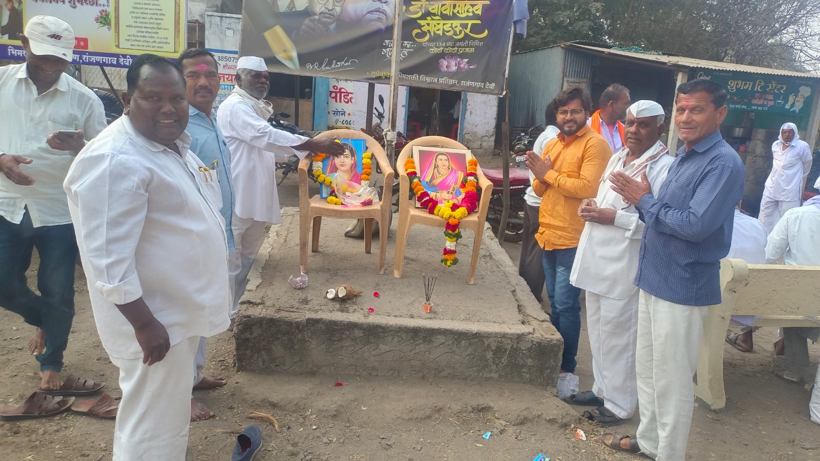 . रांजणगावदेवी( प्रतिनिधी) आज जिजाऊ माता व क्रांतीज्योती सावित्रीबाई फुले यांची जयंती रांजणगाव ग्रामस्थांच्या वतीने व ह भ प बंन्सी महाराज तांबे माध्यमिक विद्यालय यांच्या वतीने ठिकठिकाणी साजरी करण्यात आली