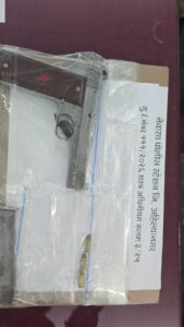 १.५०,०००/-रु कि.चा एक स्टील सारखे धातुचा त्यास बाउन रंगाची ग्रीप असलेला गावठी पिस्टल त्यास बॅरेल, मॅक्झीन, ग्रीप, टिंगर असलेला गावठी बनावटीचा। पिस्टल जु.वा. कि.अं
