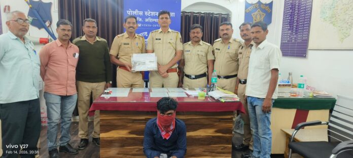 येणे प्रमाणे वरील वर्णनाचा व किमतीचा मुददेमालदोन पंचासमक्ष जप्त करून आरोपी नामे संतोष कारभारी नरोटे वय. २२ वर्ष रा. मोहरी ता. पाथर्डी जि. अहिल्यानगर याचे विरोधात पोशी अमोल डमाळे यांनी नेवासा पोलीस स्टेशन येथे गु. रंनं १११/२०२६ शस्त्र अधिनीयम कलम ३/२५ प्रमाणे गुन्हा नोंद करण्यात आला आहे.