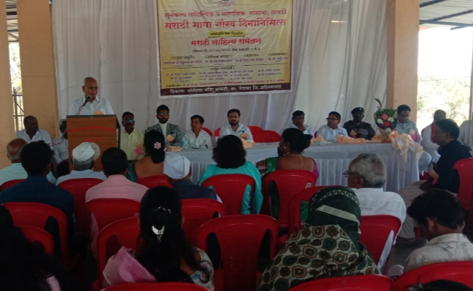 तरवडी तालुका नेवासा येथे सुसंकल्प साहित्यिक व सामाजिक संघटनांच्या वतीने मराठी भाषा दिनानिमित्त साहित्य संम्मेलनाचे आयोजन करण्यात आले होते. साहित्य संमेलनाचे अध्यक्ष पदी कवी – गितकार बाबासाहेब पवार होते.उदघाटक ज्येष्ठ विधीज्ञ ऍड. देसाई देशमुख, स्वागताधाक्ष संजय फंड, कथाकर भाऊसाहेब सावंत,स्वराज्य फिल्म प्रोडक्शनचे गिरीश राजूरकर ,निर्माता दिग्दर्शक बाळासाहेब बांगर, सुरेश कांबळे, डॉ.शाम जाधव, मौलाना शमशाद शाहिद पठाण, फादर राजेंद्र कांबळे, भंतेजी पाटेकर, पंचपुरी महाराज, शिवाजी बिरदवडे महाराज, राष्ट्रवादीचे अब्दुलभैय्या शेख, समता परिषदेचे राहुल जावळे आदीं व्यासपीठावर उपस्थित होते.आ.विठ्ठलराव लंघे यांनी सदिच्छा भेट दिली.